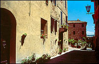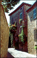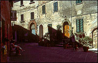 | Kleiner verschlafener Platz... | ...in Castelmúzio. | Schmales Gässchen |